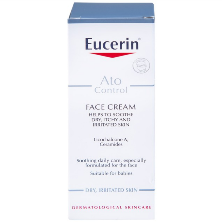 - Kem dưỡng da giảm ngứa Eucerin AtoControl Acute Care Cream với công thức hoàn hảo từ sự kết hợp của Acid béo Omega 6, Licochalcone A (Chiết xuất từ rễ cây cam thảo), Menthoxypropanediol và Decanediol sẽ mang đến cho da sự dịu nhẹ mềm mại, giúp giảm khô, nứt ngứa và mẩn đỏ (do khô da).